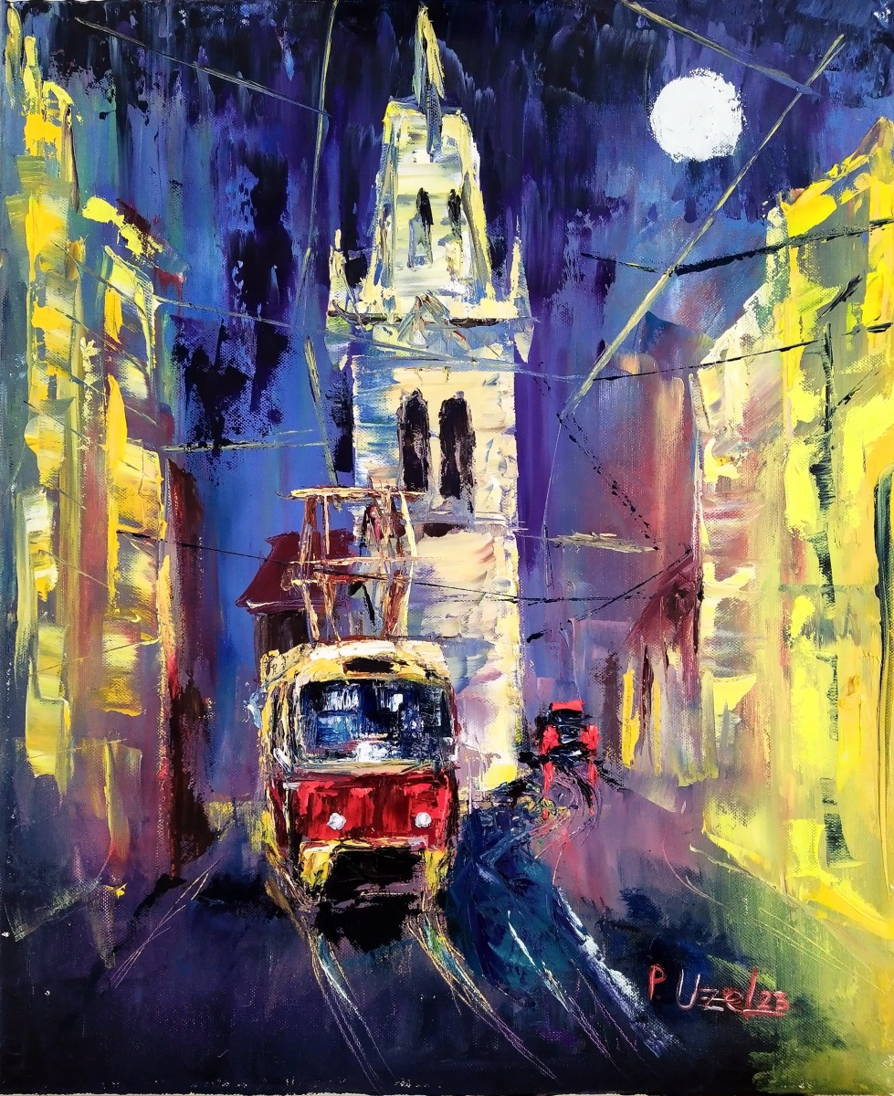 Obraz vznikl jako fasciace městem a rušným životem v něm v době, kdy jsem dokončil studium na lesnické vysoké škole a až tehdy si s trochou bázně uvědomil, že profese vázaná na tento obor mě s největší pravděpodobností odtrhne od mého milovaného městského způsobu života a nasměřuje někam k nekončícímu klidu lesních samot. To se naštěstí nakonec nevyhnutelným nestalo.