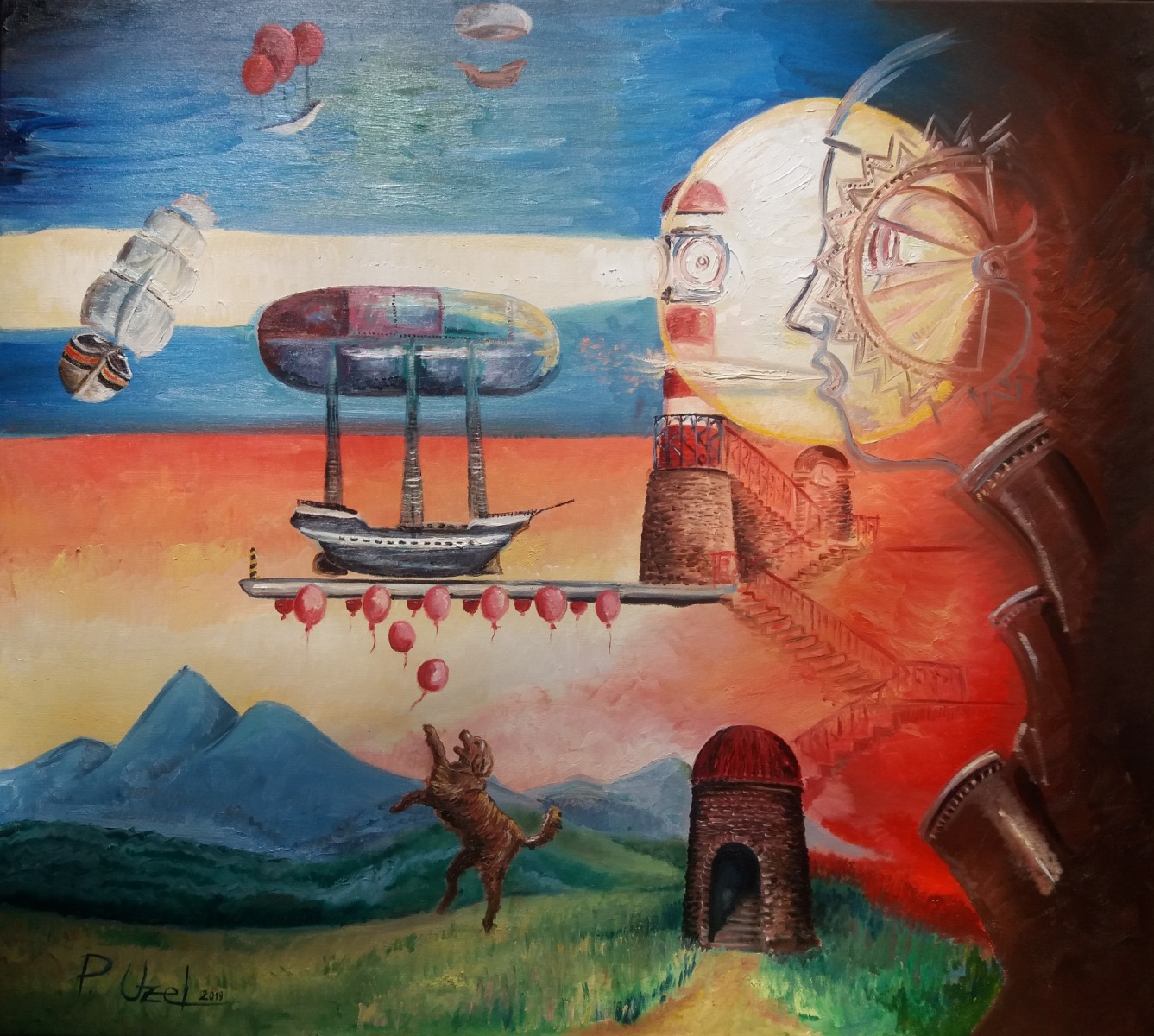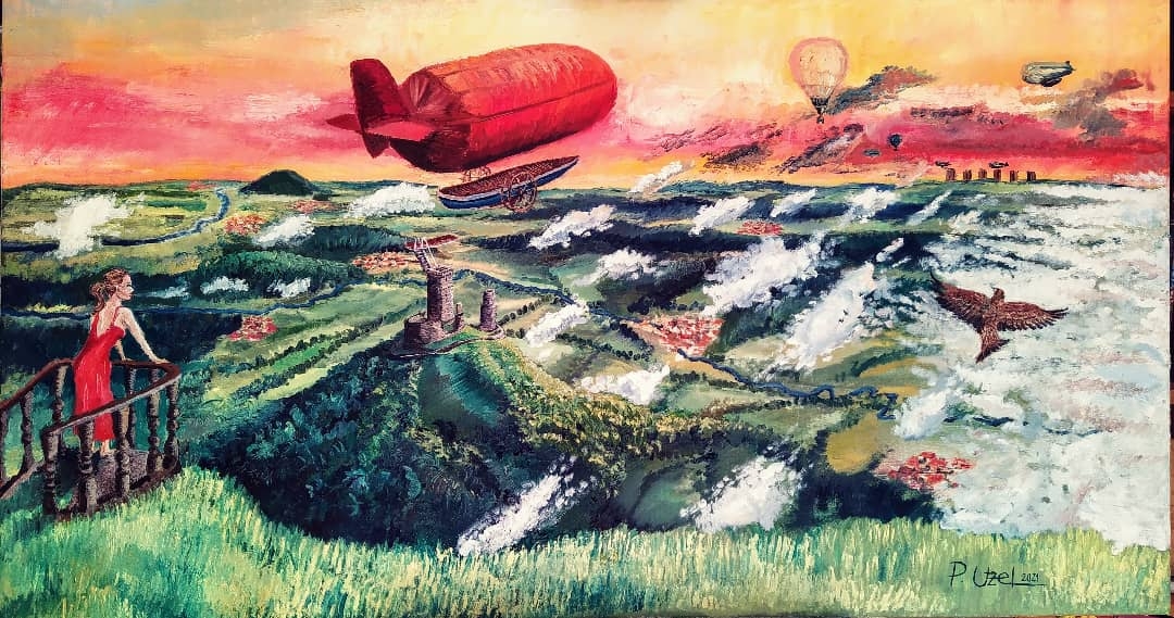 Sousloví "být volný jako pták" je nejen v umění často interpretovaným motivem zejména ve spojitosti s archetypem svobody toku myšlenek nebo volnosti v cestování. V České kotlině snad ani není vhodnějšího místa ke ztvárnění námětu lidského snění o poznávání dálav, než prostřednictvím některého z dalekých výhledů Českého středohoří. Zde ve steampunkovém pojetí.