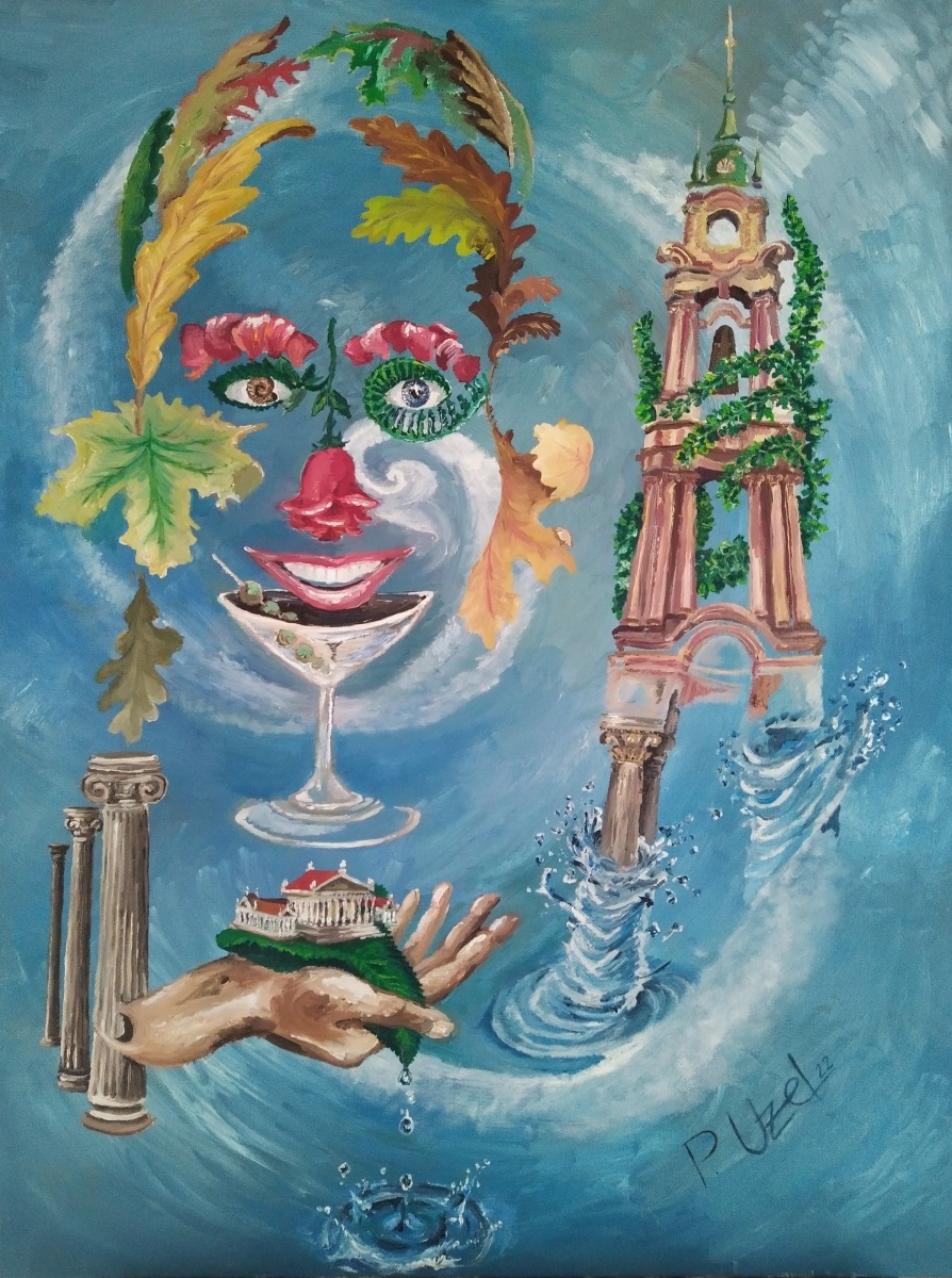 Kolébkou architektury v Evropě napříč staletími je bezesporu antika. Hlubokou studnicí inspirace i pro slohy, které z antiky toliko nevycházely (gotika, secese) byla však stejně jako do jisté míry i pro antické ornamentální vyjadřování ryzí příroda. Tento obraz pojímá múzu či bohyni architektury složenou z přírodnin a přírodních elementů jako nekonečnou inspiraci pro celé lidské umělecké stavitelství.