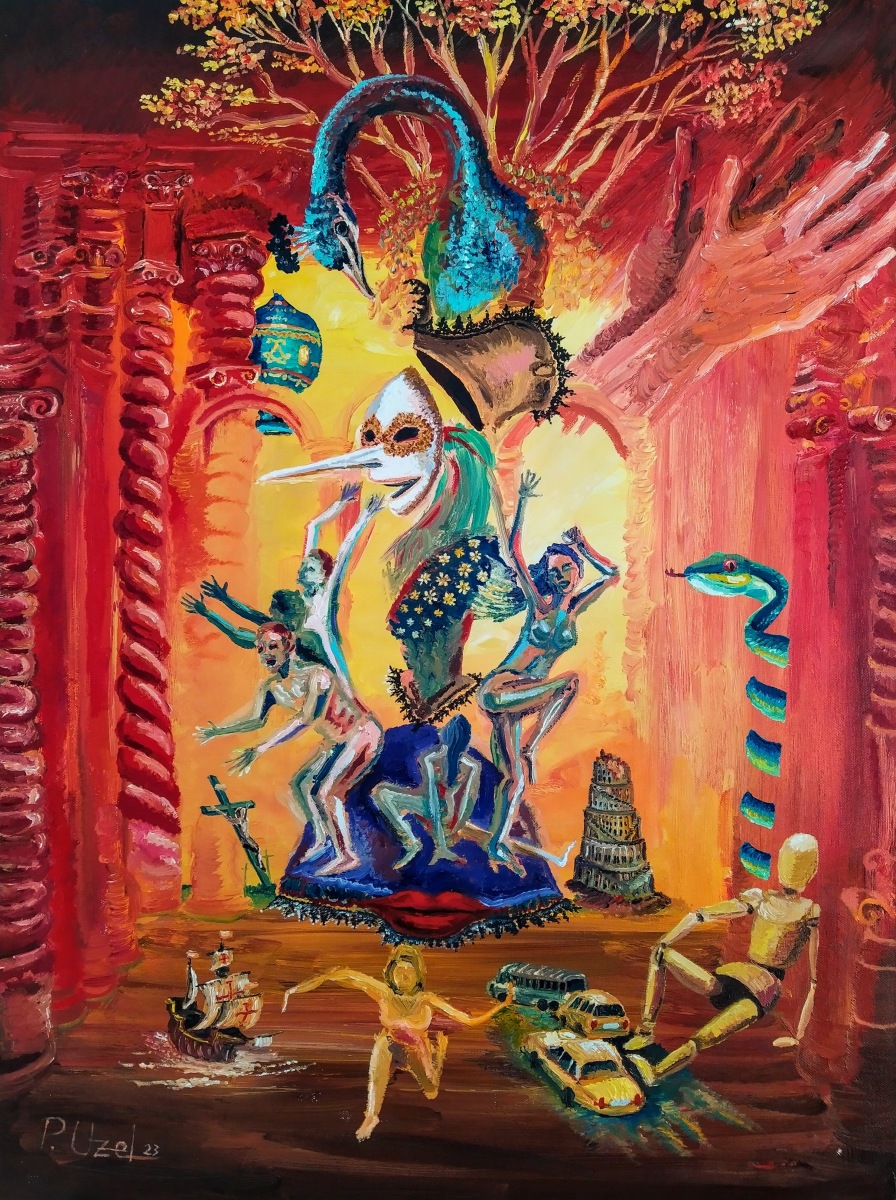 Strom poznání, první lidská dvojice, had z ráje, Babylónská věž, ukřižování Krista, objevení Ameriky, bratři Montgolfiérové, tvrdnutí v dopravní koloně cestou do práce, to je jen slabounký výcuc obsáhlé divadelní hry o nečetně dějstvích hraných v nekonečně širokém obsazení v opulentních barokních kulisách s extravagantními kostýmy Benátského karnevalu s()prostým názvem Život. To, co Dante za smrtí jednotlivce ve svém slavném díle nazval Božskou komedií, je tedy před ní analogicky komedií lidskou! Pojďme se tedy v našem partu právě rozehrané lidské části komedie radovat a smát, ať je to vskutku komedií!